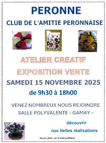 Le club de l'Amitié Péronnaise organise une exposition vente le samedi 15 novembre de 9h30 à 18h.
