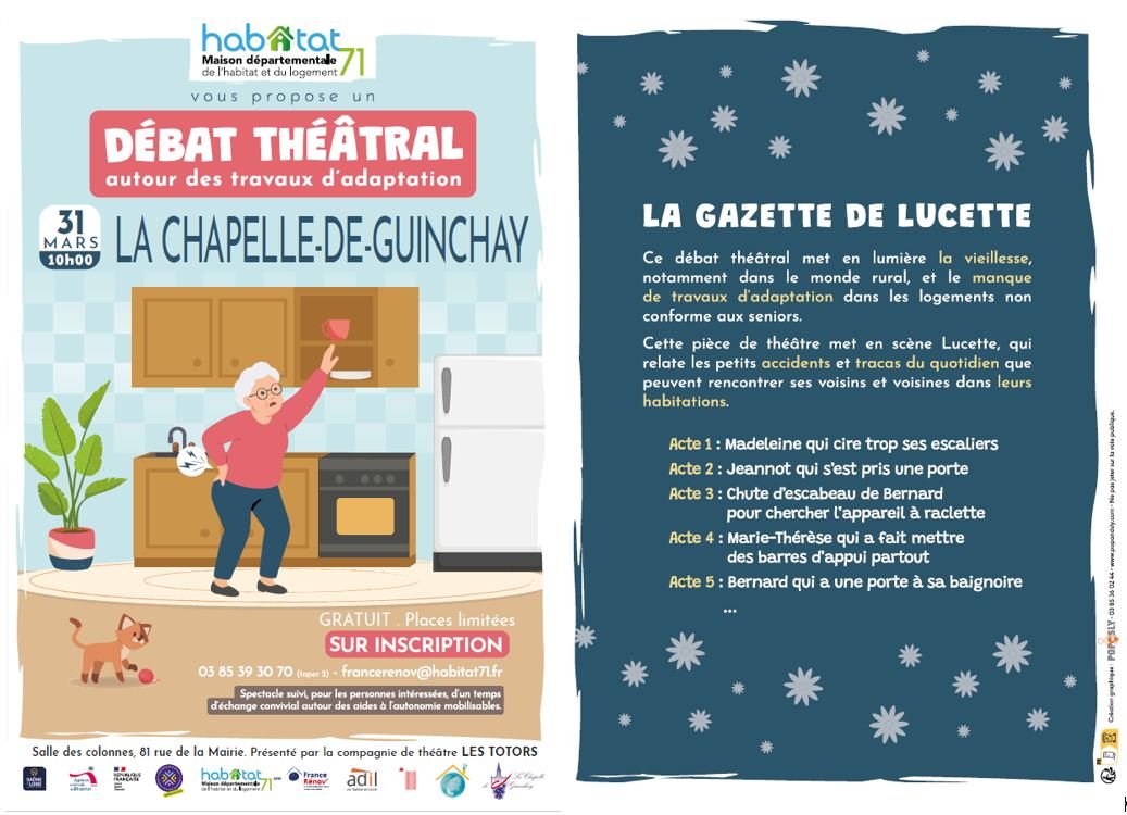 Le mardi 31 mars à 10h, la Salle des Colonnes à La Chapelle-de-Guinchay accueillera un spectacle théâtral gratuit.