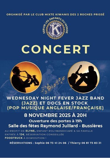 Le Club Kiwanis de Prissé organise le Samedi 8 novembre à 20h00 une soirée concert à la salle des fêtes de Bussières.