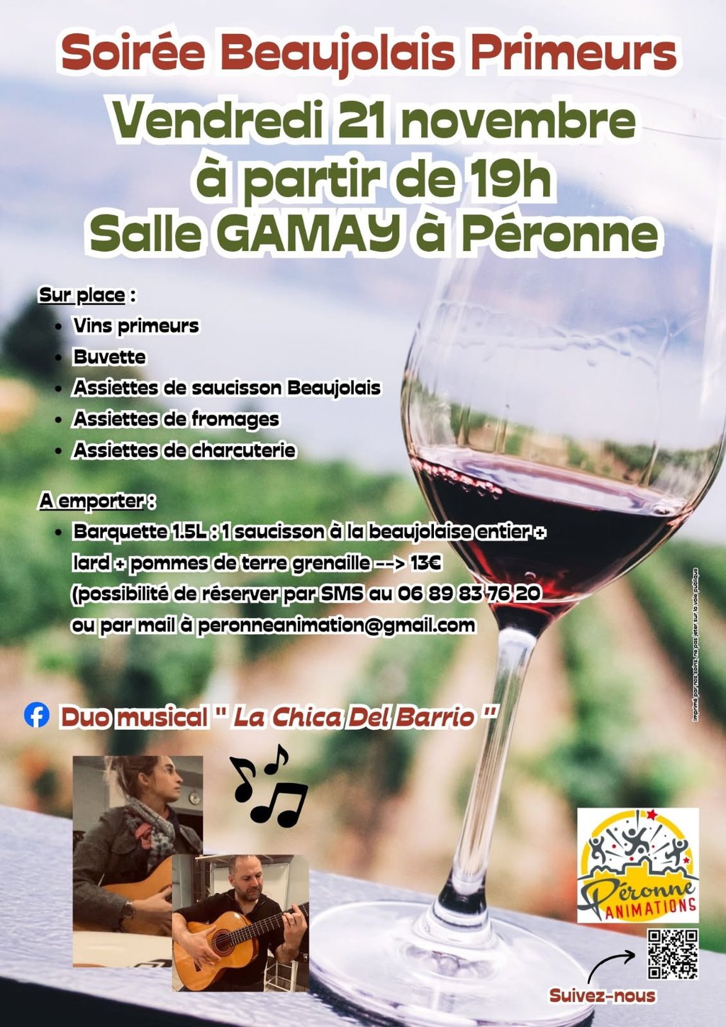 Soirée Beaujolais primeurs salle Gamay à Péronne à partir de 19h.