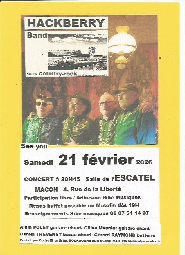 Concert avec la Coda de Country Rock - Hack Berry Band le Samedi 21 février 2026 à l'Escatel